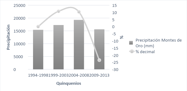 Figura 4: Precipitación quinquenal en Montes de Oro.